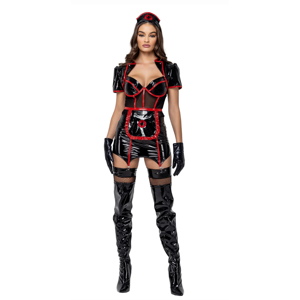 Includes Dress with Garter Clips, Bolero, Apron, and Headpiece